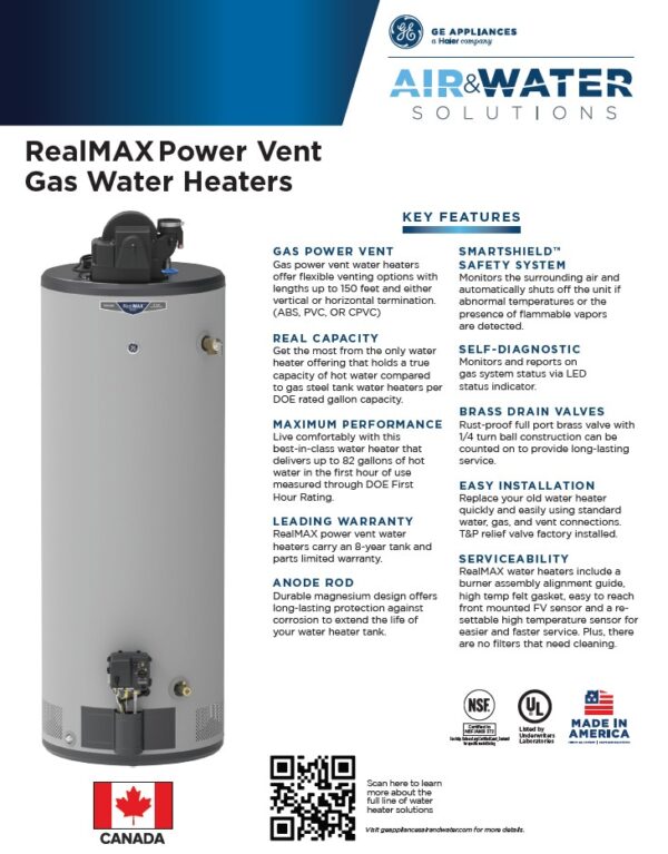 RealMAX Gas Water Heater 50 gallon – GE Power Vent CG50S08AYV
